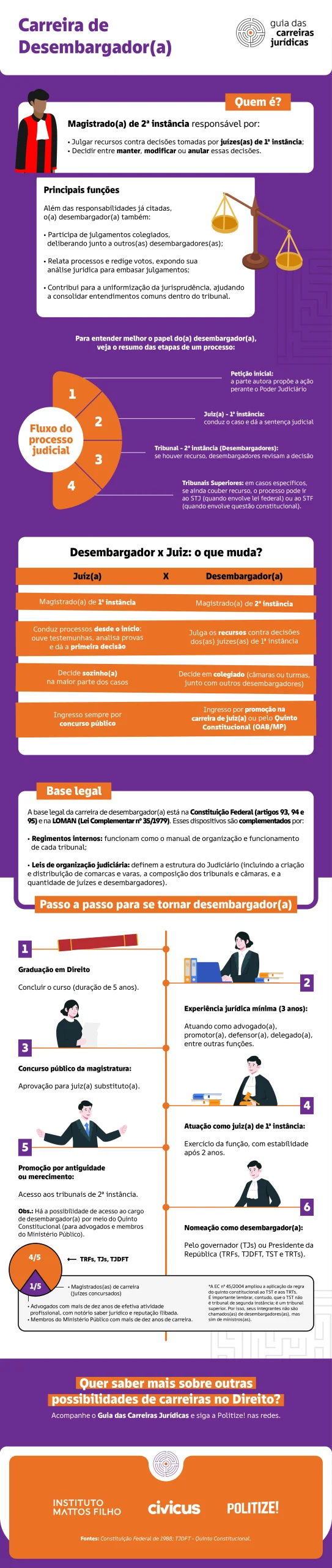 O Guia das Carreiras Jurídicas, uma iniciativa do Instituto Mattos Filho, em parceria com a Civicus e a Politize!, busca democratizar o conhecimento jurídico e orientar quem deseja explorar as diversas áreas do Direito, construindo uma carreira com propósito e impacto.