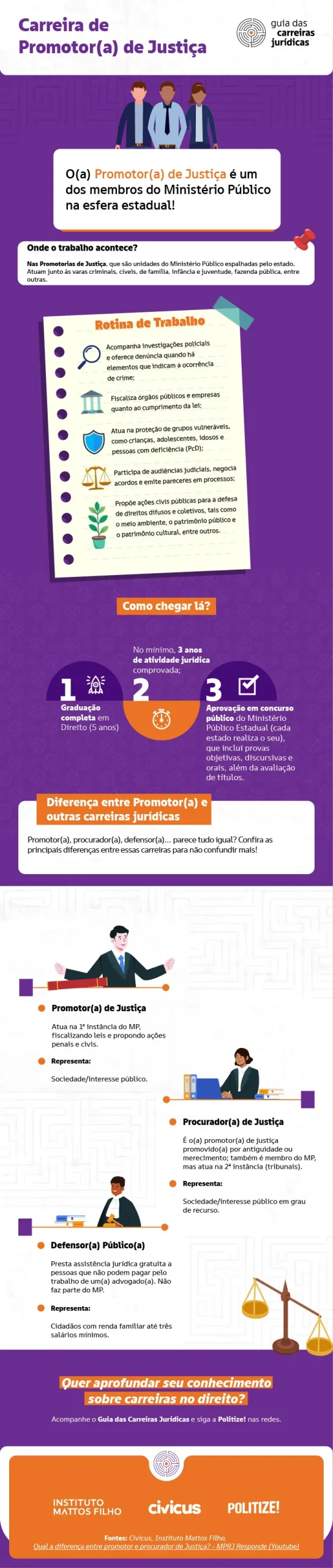 O Guia das Carreiras Jurídicas, uma iniciativa do Instituto Mattos Filho em parceria com a Civicus e a Politize!, busca democratizar o conhecimento jurídico e orientar quem deseja explorar as diversas áreas do Direito, construindo uma carreira com propósito e impacto.